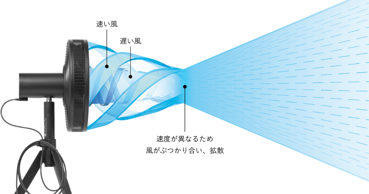 「渦をなくした風」が通常の約4倍に拡散。「自然界にいるようなやわらかさ」を感じられる。