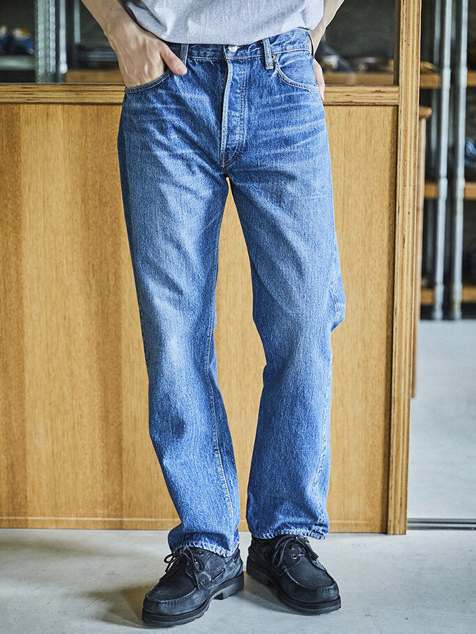 また、ブランドジーンズの特長として「シルエットの美しさ」も欠かせません。フレンチワークパンツのシルエットを採用することで、ストレートモデルにありがちな野暮ったさを軽減し、下半身をスマートに表現してくれます。